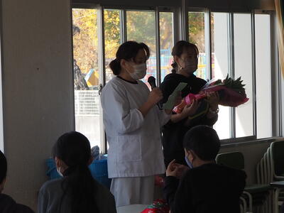 今回の感謝の会は、「勤労感謝の日」にちなんで、日頃からお世話になっている調理員さんやスクール・サポート・スタッフ、バスの運転手さんに感謝するということで運営委員会が中心となって行いました。