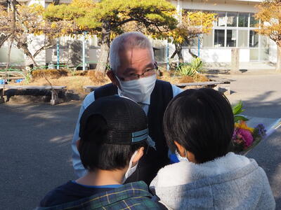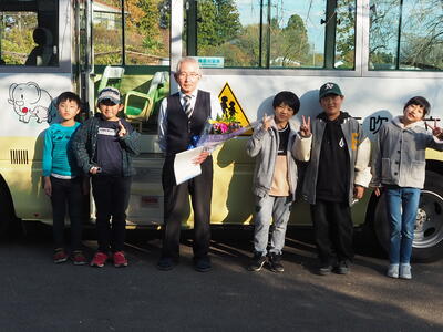 バスの運転手さんには、バスの発車の時刻に合せてバスを利用している子どもたちがメッセージと花束を渡しました。