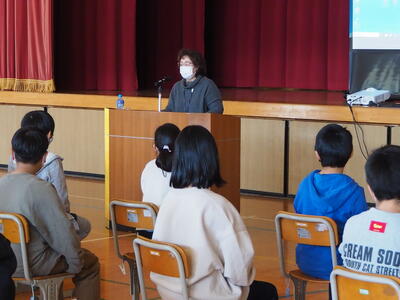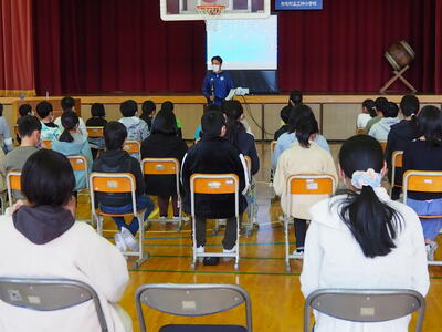 最後に、学校医の会田先生からしっかりとした体をつくるための食事の重要性、早寝早起きの習慣化についてお話がありました。