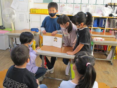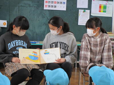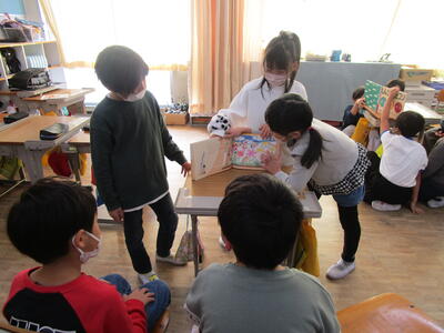 11月8日(火)昼休みに、図書委員会の子どもたちが、三神幼稚園に読み聞かせに行ってきました。