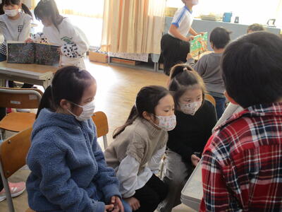 幼稚園の子どもたちが喜んで聞いてくれて、図書委員会の子どもたちは、喜んでいました。