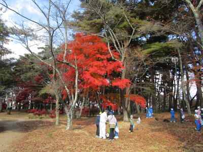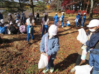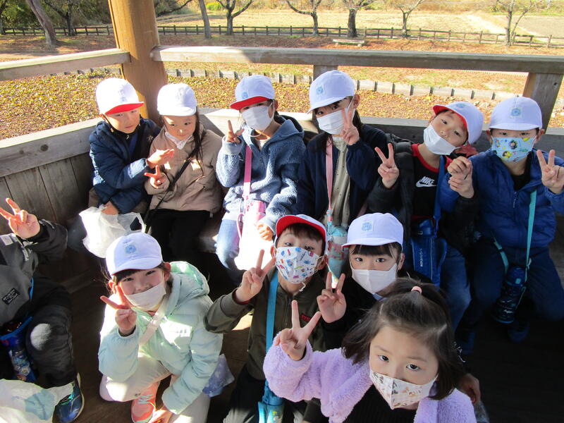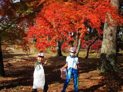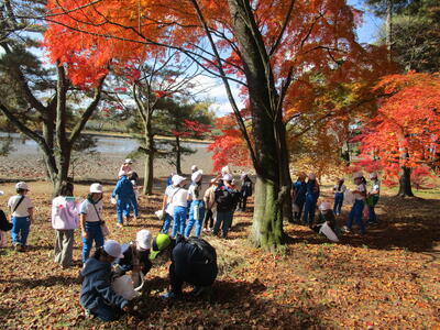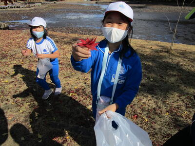 1・2年生は、大池公園で秋を探そうということで、落ち葉や木の実をたくさん拾ってきました。豊かな自然にふれあい、遊具で遊んだりもして、楽しく活動してきました。