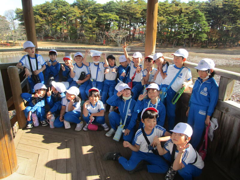 11月8日(火)の2~4校時目に、1・2年生が大池公園に見学学習に行ってきました。