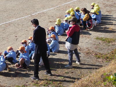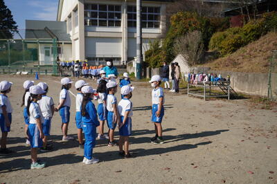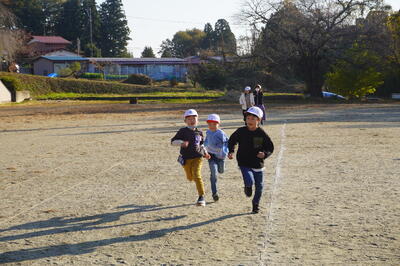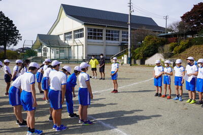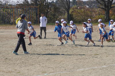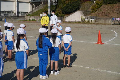 1・2年生の持久走記録会には、三神幼稚園の園児や走り方の指導をしていただいた長谷川さん、たくさんの保護者の方々がいらっしゃいました。