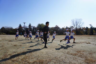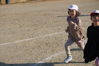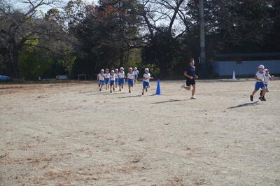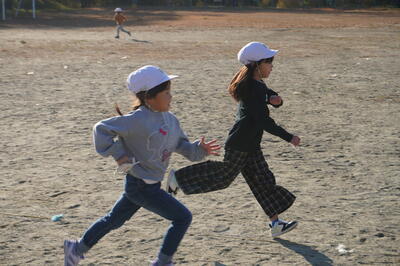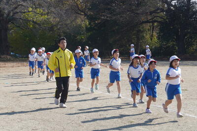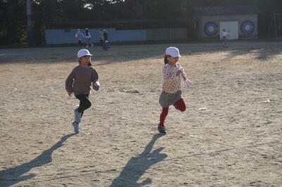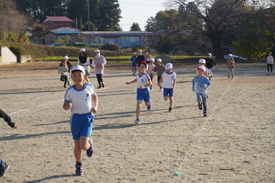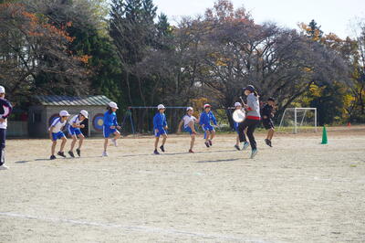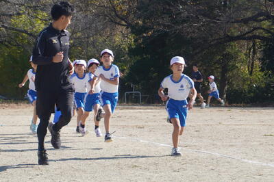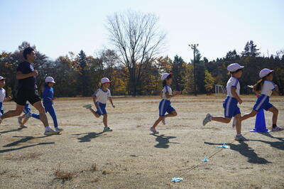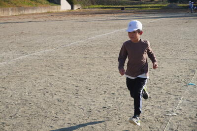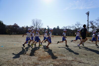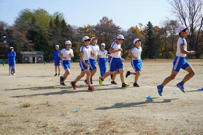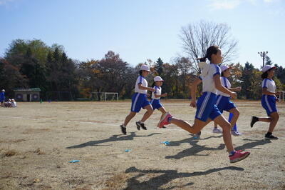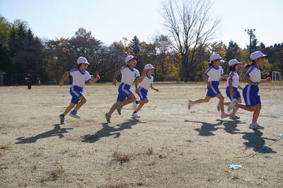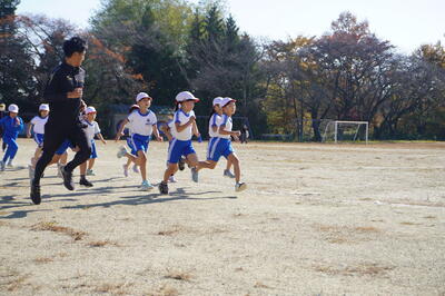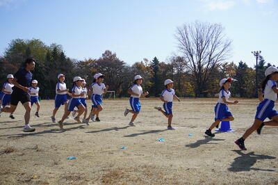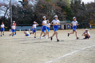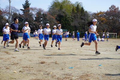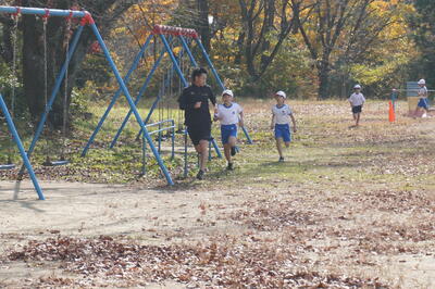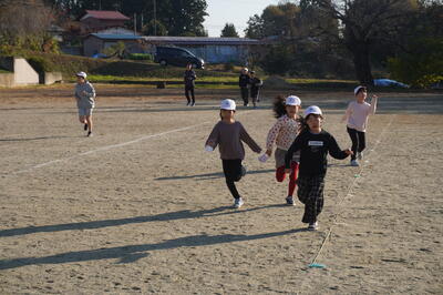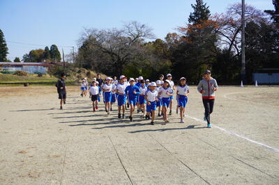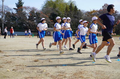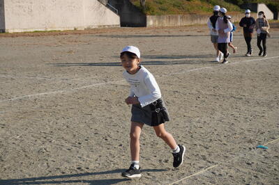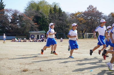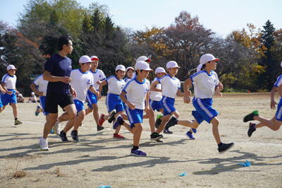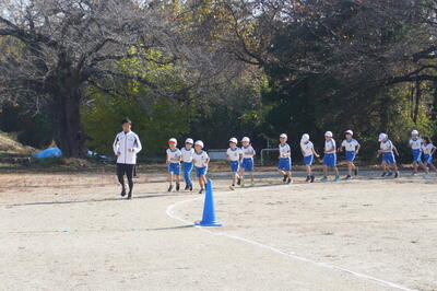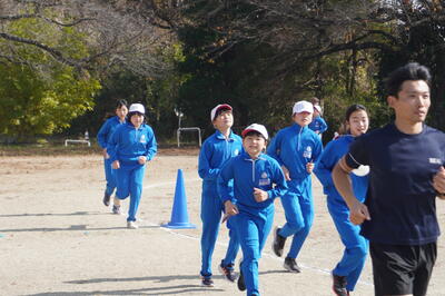 11月9日(木)の朝の時間に、校庭を走っている子どもたち。明日の持久走記録会に向けて、がんばっていました。