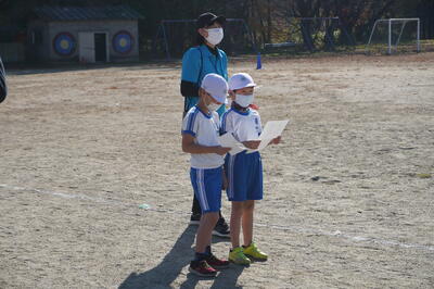 閉会式では、サポート・ランナーの柳沼さんと大塩さんに代表児童がお礼の言葉を述べました。