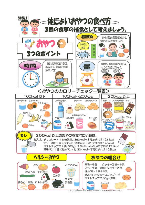 特に、「冬休みのおやつは、考えて食べよう。」は、福島県教育庁健康教育課から出されている資料です。