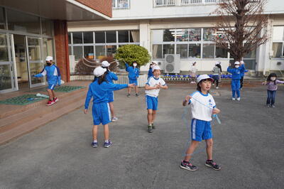 いつものように、1・3年生が上校庭でなわとびをしていました。