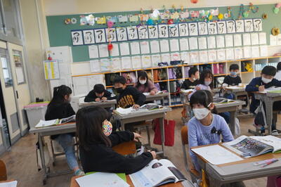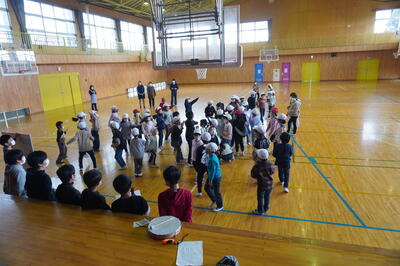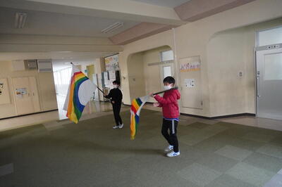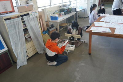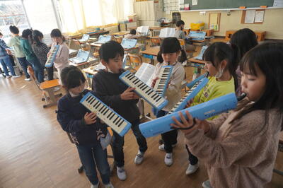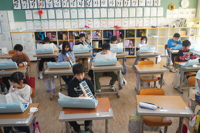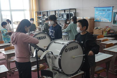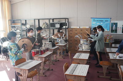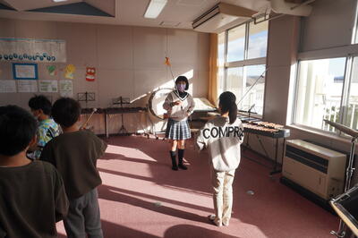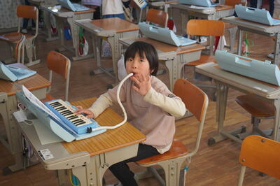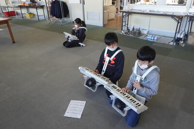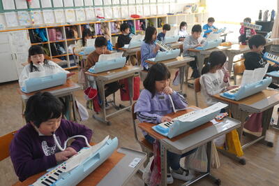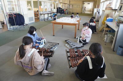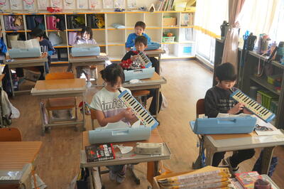 校舎内では、鼓笛の自主練習をしている子どもたちを見つけました。