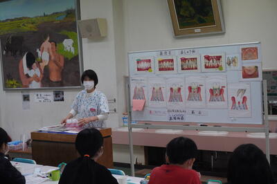 歯科衛生士の宮本先生や野崎先生から、「歯ブラシは、1カ月程度で新しい歯ブラシに替えてほしいこと」、「1週間に1回程度、保護者の方にお子さんの仕上げみがきをしていただき、口の中の様子を見てほしいということ」など、「大切な歯を守るために保護者の方にも、協力をお願いしてください。」というお話をいただきました。