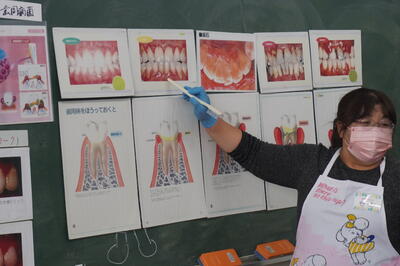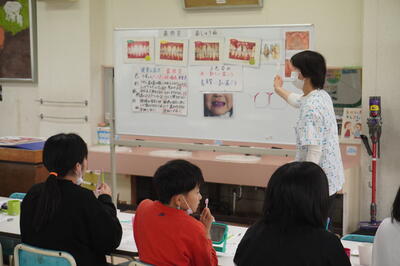 本来、9月に実施する予定でしたが、コロナウイルス感染症の影響で延期となっていました。今回は、歯科衛生士の宮本先生に講師をお願いし、「歯肉炎の予防」について指導をしていただきました。