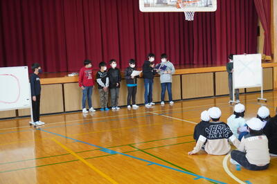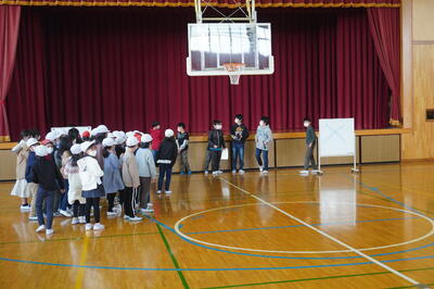 12月21日(火)の昼休みに、給食委員会による〇×クイズが体育館で行われました。