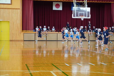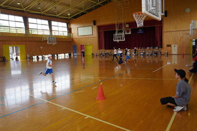 6月6日(火)の4校時目に、3・4年生が体力テストの練習でシャトルランを体育館で行っていました。