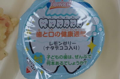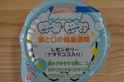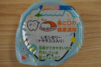 歯の衛生週間ゼリーには、クイズが書かれていました。