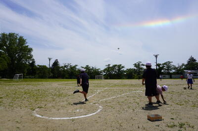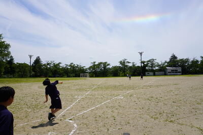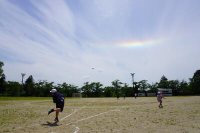 そして、昨日ラインを引いた「ソフトボール投げ」のスペースで、ソフトボール投げの練習をしている子どもたちがいました。