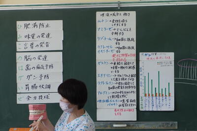 「かむことの大切さを考えよう!」というめあてで授業を行いました。