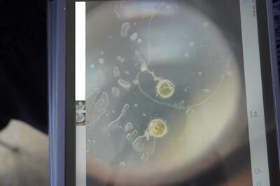 メダカのたまごを解剖顕微鏡で観察しているところでした。