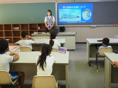 9月13日(火)の4校時目に、野口英世記念会学芸員補の山本様を講師としてお迎えし、「野口英世の生涯について」というタイトルで出前授業を行っていただきました。