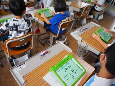 ロイロノートを使って自分のつくった式を友だちに解いてもらう活動や、全員の回答を共有したりしていて、驚きました。