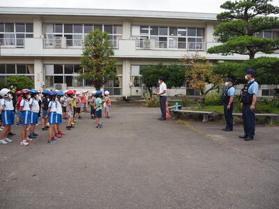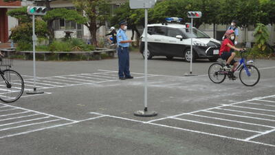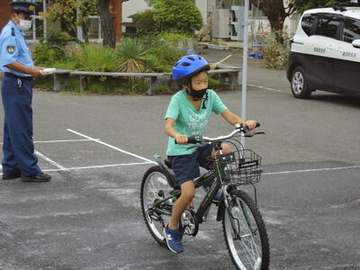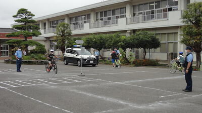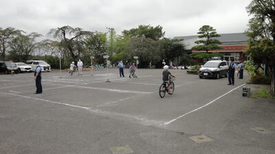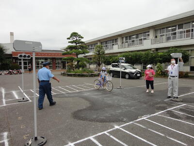 講師として矢吹交番から2名、交通指導員の方が2名、まちづくり推進課の方1名がお出でになり、指導していただきました。