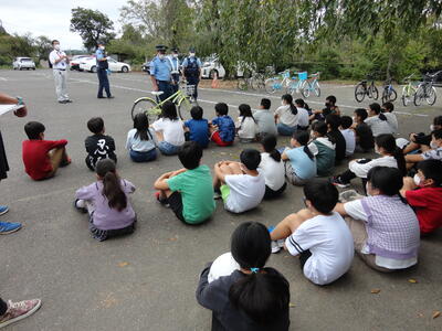 9月15日(木)の3校時目に1~4年生が、4校時目に5・6年生が交通教室を行いました。