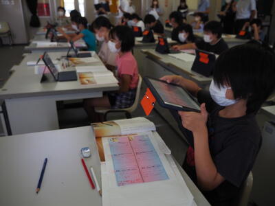 4年生は、「ごんぎつね」の学習を「ロイロノート」を使って行っています。その様子を見ていただきました。