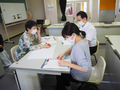 授業終了後の事後研究会では、4つに分かれてグループ協議を行いました。