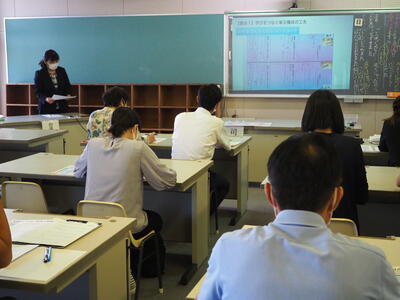 9月16日(金)の5校時目に、4年生が矢吹町の幼保こども園小中学校の先生方(各2名)に授業を見ていただきました。今回、高校の先生方は、都合によりお見えになりませんでしたが、たくさんの先生方がお見えになりました。