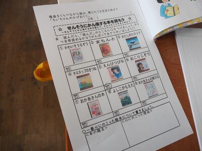 図書室にある本の中から、学校司書が選書してくれた戦争に関する9冊の本を、ビンゴの要領でたくさん読めるようなワークシートを作成し、並行読書ができるよう工夫しています。