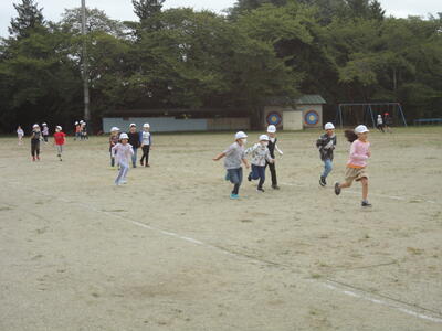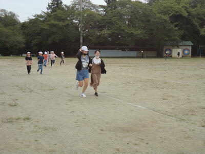 6年生が率先して外に出て走っていました。その姿をお手本として、意欲的に走る様子が見られました。