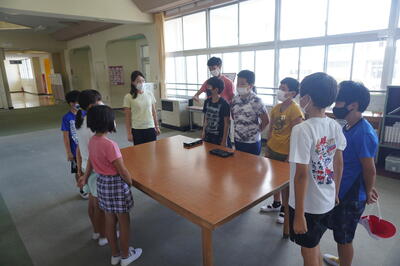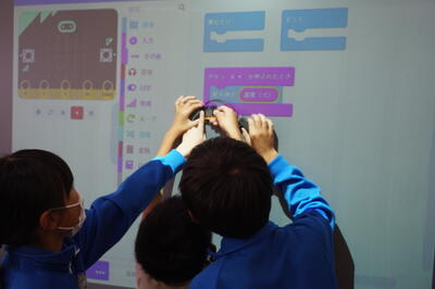 ICT 支援員の関根さんに講師をお願いし、マイクロビットを使ってプログラミングの学習を行いました。