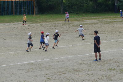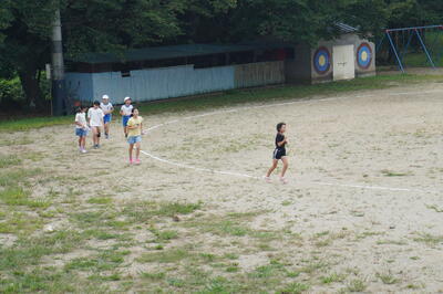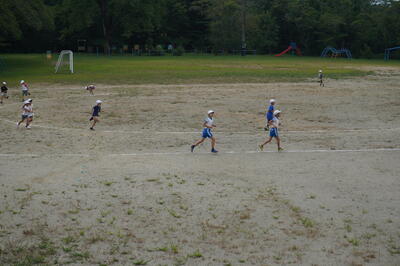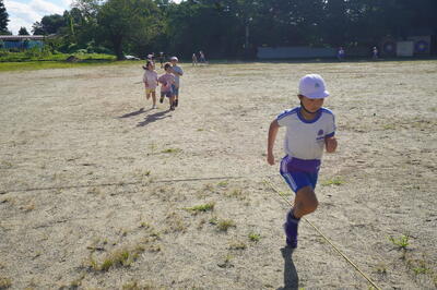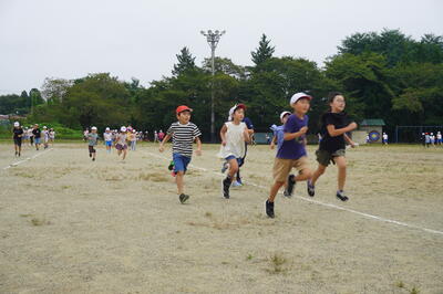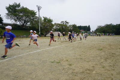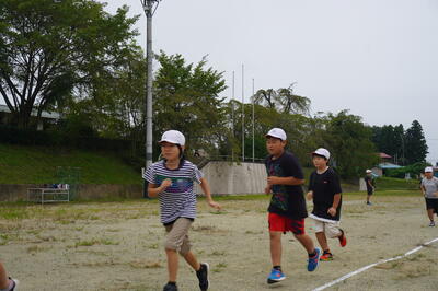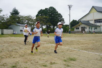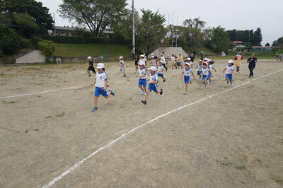 1~3年生は、150mのトラックを5分間、4~6年生は、200mのトラックを7分間走りました。