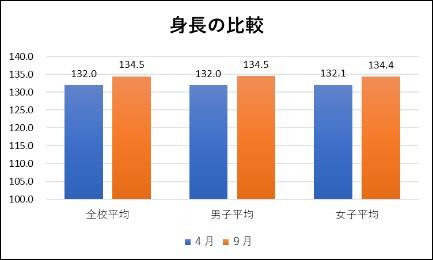 身長は、4月と9月を比較すると、全体で約2.4cm伸びています。