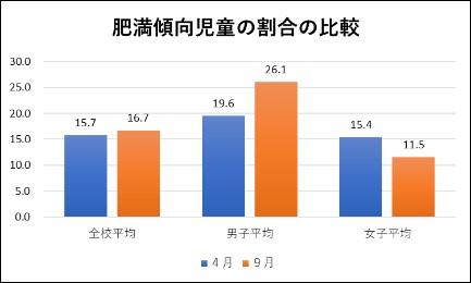 全校生の中で肥満傾向児童が全体で約0.9%増えています。