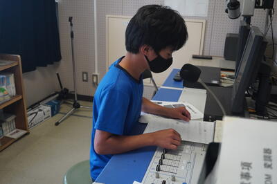 4校時目は、視聴覚室で光センサーや温度センサーを使ってプログラミングを学びました。