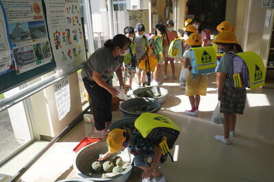 1~3年生の下校時には、3年生が「カボチャは、いりませんか?」と下級生に呼びかけていました。