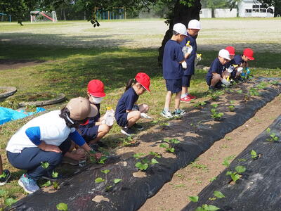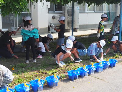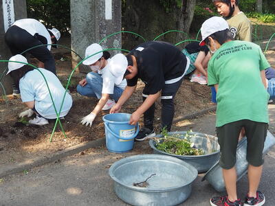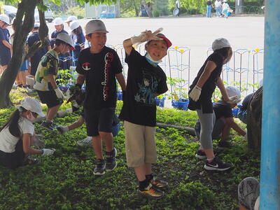 子どもたちは、それぞれの場所で責任をもってきれいに除草してくれました。