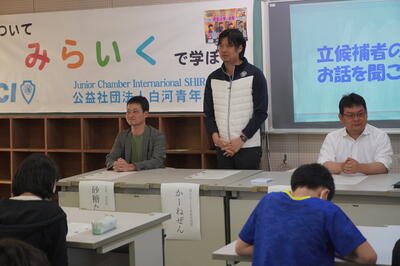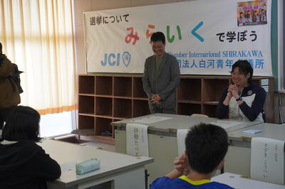 白河青年会議所の方々は、「子どもたちが選挙について真剣に考えてくれて非常にうれしかった。」、「今日のことを家族に話し、大人にも選挙について考えてほしい。」と話していました。