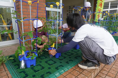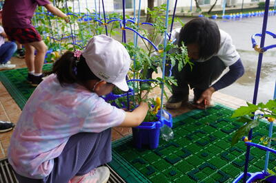 6月14日(水)の2校時目に、2年生がトマトの「芽かき」を行いました。