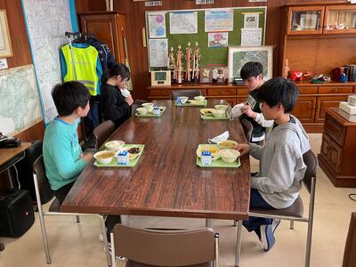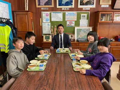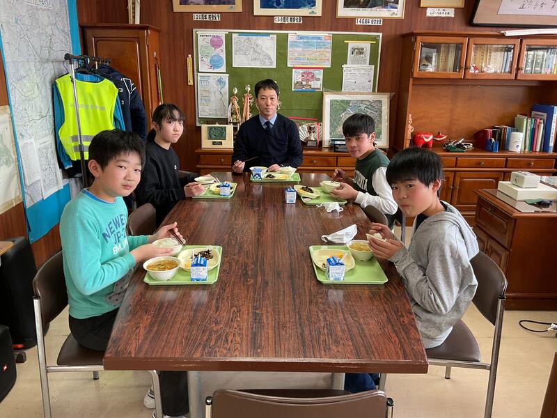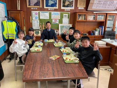 6年生と校長が一緒に校長室で給食を食べる企画です。