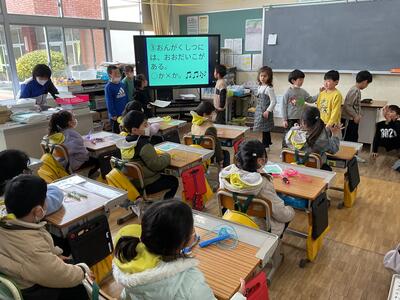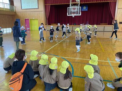 3月5日(火)の3校時目に、1年生と三神幼稚園の年長さんが交流会を行いました。