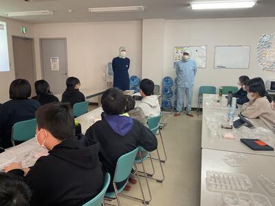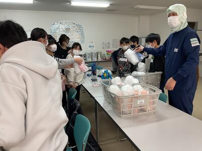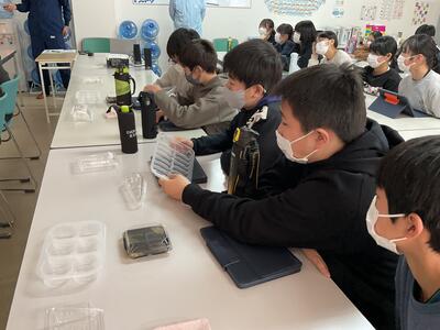 見覚えのある容器がたくさんこの工場で作られていることを知ると共に、作業服を着て作業現場を実際に見ることができ、子どもたちは、興味深く見学をしたり、説明を聞いたりしていました。