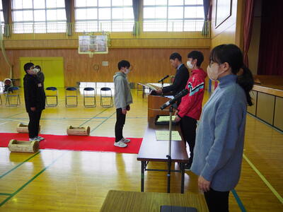 3月12日(火)の3校時目に、4~6年生が体育館に集まり、卒業式全体練習を行いました。