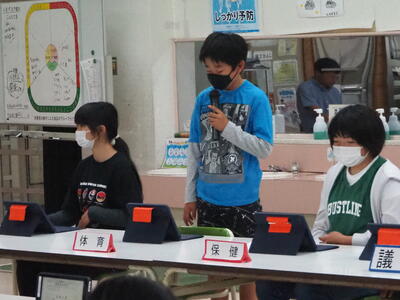 6月14日(水)の6校時目に、4~6年生が食堂で児童会総会を行いました。