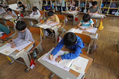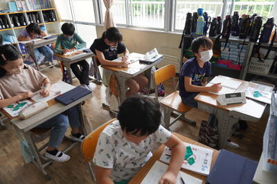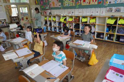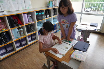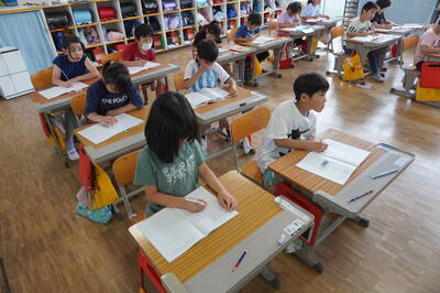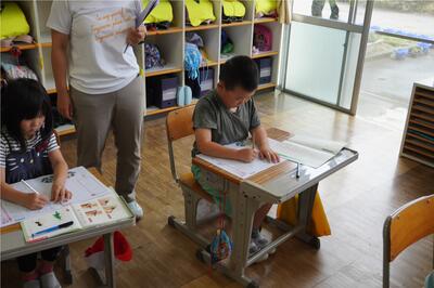 子どもたちは、ひらがなの学習を行っていましたが、筆順に気をつけながら、丁寧に書いていました。