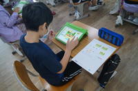 4年生は、「ゆうぐれ」づくりを行い、3年生と同様に背景やキャラクターを選んだ後、夕暮れというテーマでストーリーをつくりました。最後にみんなで発表し合って、友達の作品のよさやアイディアを共有することができました。