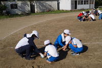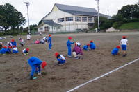 10月10日に予定されている運動会で、安全に気持ちよく競技や演技ができるように、全校生が一生懸命草をむしりました。