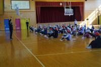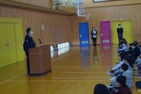 校長先生、署員さんから、絶対に飛び出しはしない、自転車に乗るときは必ずヘルメットをかぶる、自分の命は自分で守るなどの大切なお話をいただき、みんな真剣に聞くことができました。