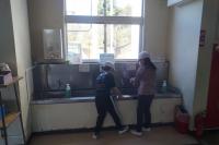 その後、班毎の清掃箇所に移動し、6年生の班長を中心に、メンバーを確認したり、役割を分担したりしました。
