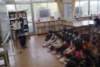 はじめに、学校司書の矢吹先生より、学年の発達段階に応じた本の読み聞かせがありました。みんな一生懸命話を聞いたり、本の挿絵を見たりしました。